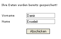 Hinweistext ausgegeben. Sollte der Besucher versehentlich das Formular zweimal